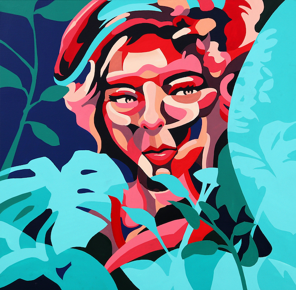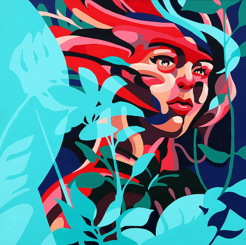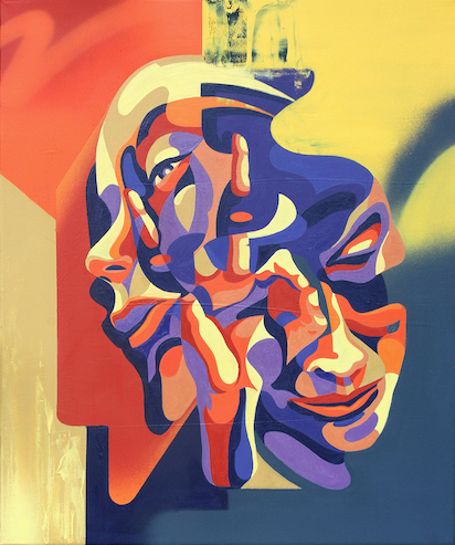 acrylic and spray paint on canvas