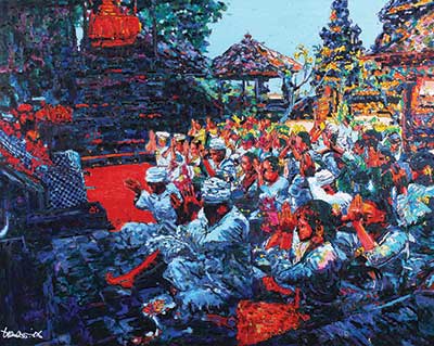 Sembayang di Pura Gowa Lawa