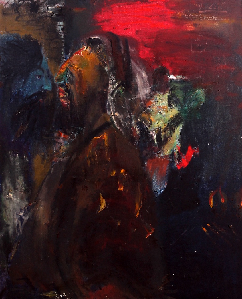 The 1960s was a difficult time for Indonesia, as well as for Sudjojono personally. However, it was during this time that he produced many of his best paintings, including this particular piece. In his paintings, he makes use of models, usually family members, neighbors or other acquaintances. In this painting, he paints his step daughter, taking attention to the details, especially of her dress, a peach colored baju kurung with a green bottom. She is seated in an elaborate white wrought iron chair, which reminds us of the rattan peacock chair popular in the 1960s, which is still with the Sudjojono family today. The painting is not done using his realist technique which he used in the 1950s, so we cannot see what book she is reading. The forms of the objects in the painting are instead painted with the artist’s comprehension of structures of the objects in the painting, the book, the dress, the table and the chair, in a much stronger painterly manner. With just a few swift brushstrokes, Sudjojono captures the nuances of the scene. Quietly, it is a very strong painting.